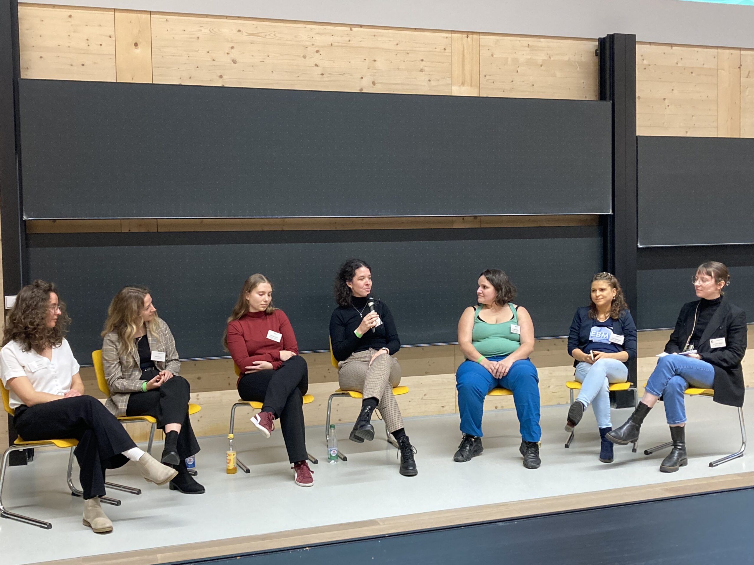 To this end, Eva brought together female students, doctoral and postdoctoral researchers as well as professors to talk about their various experiences at the different levels of their careers (Marlene Ziegler, Julia Wimmer, Patricia Schmul, Katharina Braun, Dr. Sabine Thürauf, Dr.-Ing. Silvia Budday, Elisa Neuß, Viktoria Cichocka). Very impressively, our youngest panel member (7 years old) reported on the grants she acquired for two science projects, one meant for kids at the kindergarden age and the other for a project in the context of the “children’s university” in the field of electrical engineering.
